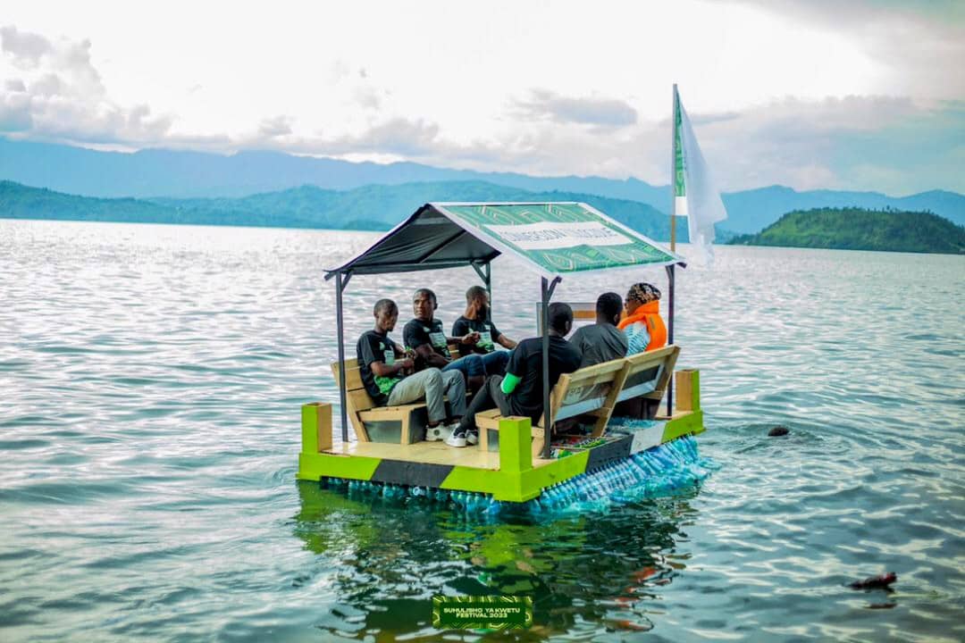 Début Novembre 2023, un groupe de jeunes du Nord-Kivu a lancé sur le Lac-Kivu, le tout premier radeau construit à l’aide des déchets plastiques. Il s’agit selon MANTAMA, coordonnateur du projet ‘’Tufaulu pamoja’’ (réussir ensemble), « d’un assemblage de bois, des bouteilles plastiques et d’autres matériaux qui ont donné naissance à ce premier radeau made in Goma, dont le test de fonctionnement a été réalisé mardi 07 novembre 2023 sur le lac Kivu, en présence de l’équipe organisatrice du festival Suluhisho ya Kwetu, superviseure de cette création locale ».