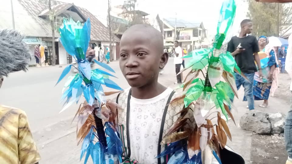 En ville de Goma, Jospin, un enfant de 11 ans, contribue au paiement de sa scolarité grâce à la confection des fleurs d’ornement à l’aide des déchets plastiques. « Je fais des fleurs à l’aide des déchets plastiques. Par moment j’achète des flacons ou bouteilles usagers, par un autre moment, je ramasse ces mêmes matières abandonnées çà et là à même le sol. Je les travaille moyennant une bistouri, je leur donne une forme et au bout d’un certain temps, je construis une œuvre que je vends aux consommateurs, et je vous assure qu’ils apprécient mon produit, » explique Jospin.